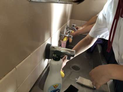 今月の保健目標を決め、石けんの補充、ウォータークーラーの清掃、持ち物調査のグラフ作成を行いました。
