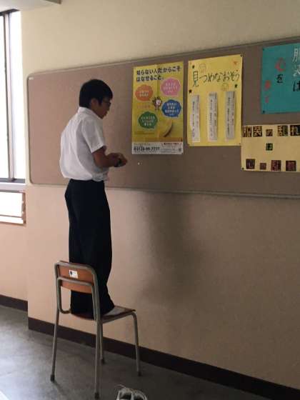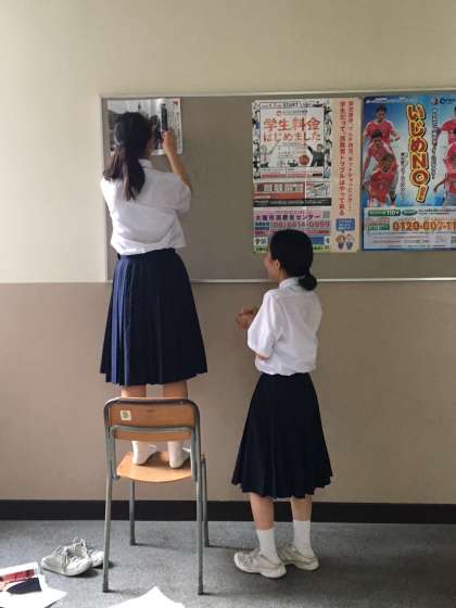 1年生も、ポスター掲示に慣れてきました。