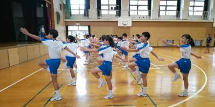 入場行進の位置取りの確認と行進の練習をしました。さすが実行委員、意識の高い行進ができています。