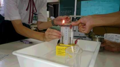 マッチの火を気体に近づけると、「ポンッ」と音が鳴って一瞬で燃えました。さて、できた気体は何でしょう?