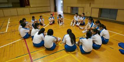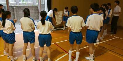 本日は、縦割り応援について、3学年の縦割り団で話し合いました。