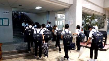 東中生が登校してきました。
