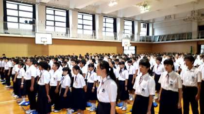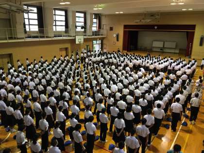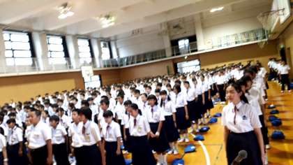 最後にこれからの行事に向けて、全体合唱「校歌」の練習をしました。