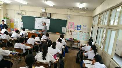 今日はアーネスト先生との授業です。電車や乗り物を使った道案内の練習です。