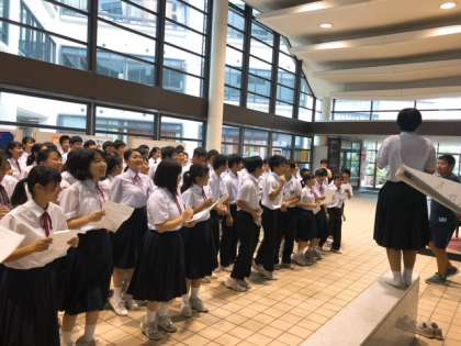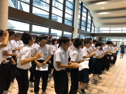 3年生が中心となり、協力して素晴らしい応援をしようとしています。