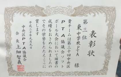 中央区PTA会長の上畑会長から3位入賞おめでとうございます!