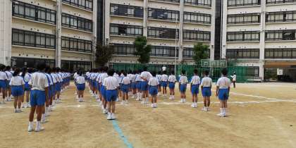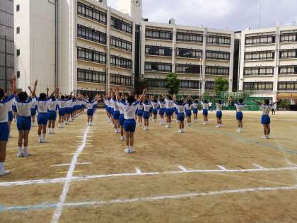 開会式の流れの確認と東中体操の練習です。