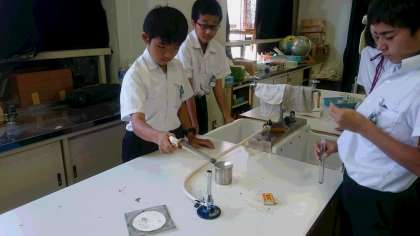 2年生 理科実験「鉄と硫黄の混合物の加熱」