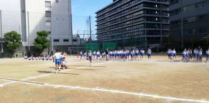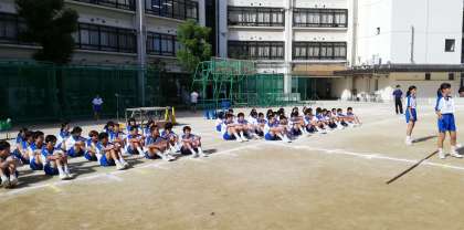 学年種目「竹取物語〜汗を流して竹を取りつつ優勝目指して引っ張りけり」の様子です。