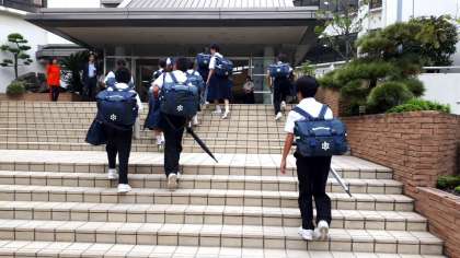 今日は体育大会の予行が行われます。雨が心配ですが、すでに体育大会実行委員会、吹奏楽部が、予行の予行練習をしています。