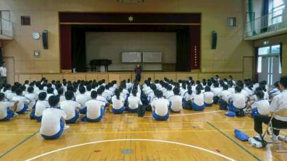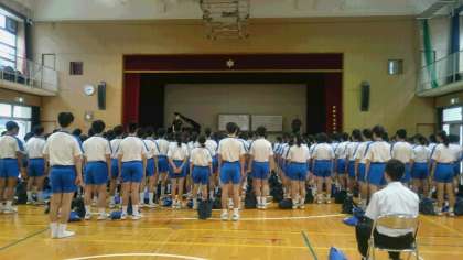 本日から、学級代表委員会からの提案で、学年集会のスタートに校歌を歌うことになりました。青木先生から、ただ歌うのではなく、心を込めて、とのお話がありました。2年生の声で全校生徒を引っ張るという気持ちで頑張ってほしいと思います。