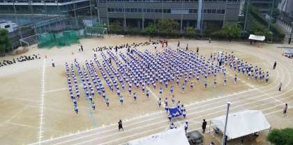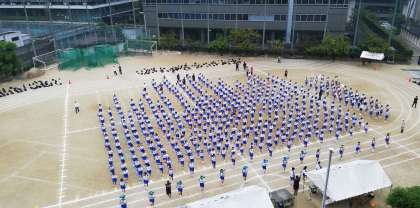 全学年がそろい、一斉に前に進みます。