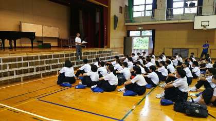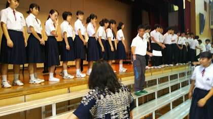 今日は来月の文化発表会で披露する学年合唱についての説明です。
