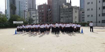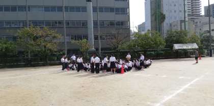 体育大会 縦割り応援練習(赤団&青団)