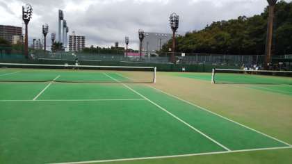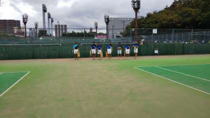 本日、ソフトテニス部は秋季総体に参加しています。長居庭球場にて開催されております。