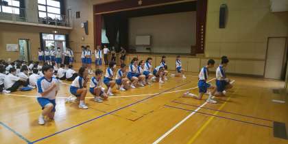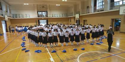 三連休明けの火曜日、あいにくの雨ですが、体育大会実行委員、応援団を中心に縦割り応援に取り組んでいます。