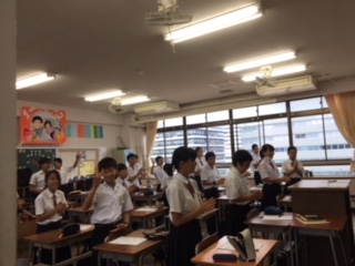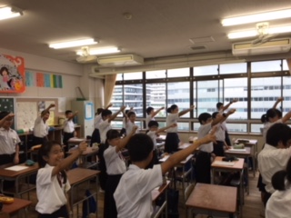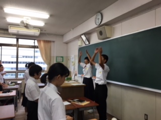 クラスで体育大会の応援の練習をしています。