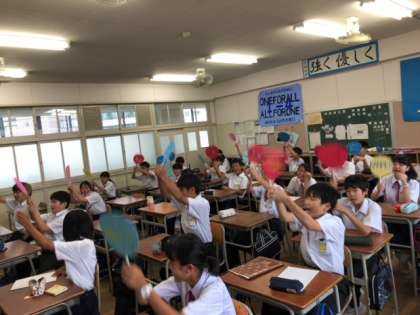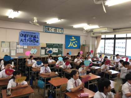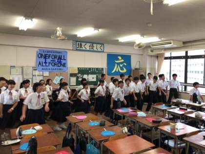 1時間目1年生は各教室で体育大会の応援練習をしました。