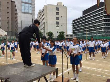 優勝旗返還、選手宣誓、東中体操です。