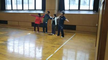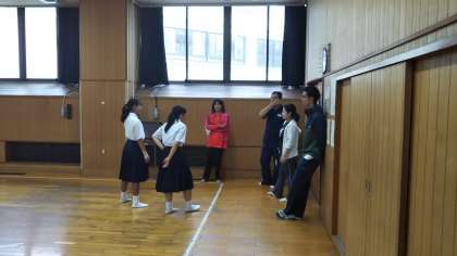 応援の中心の人達が先生とダンスの打ち合わせをしています!