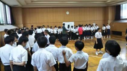 体育大会 縦割り応援練習(緑団)1