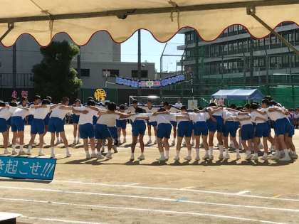 体育大会実行委員会の円陣を組んでいる様子です。