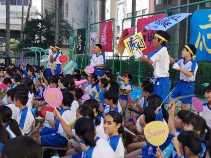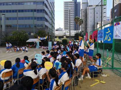 応援団が、躍りながらクラスをまとめ、頑張って応援しています。