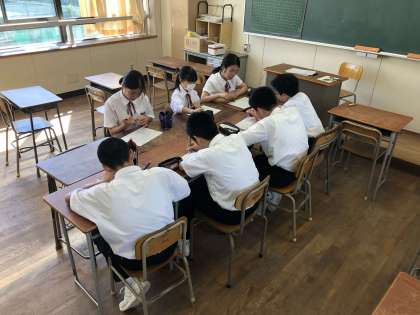 1時間目は新班編成のために班長会議を実施しています。真剣に会議ができています。頼もしい限りです!画像は3組の様子です。