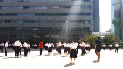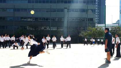 運動場は東中生でいっぱい!1年生は北村先生、橋本先生と一緒にドッジボール大会です!!