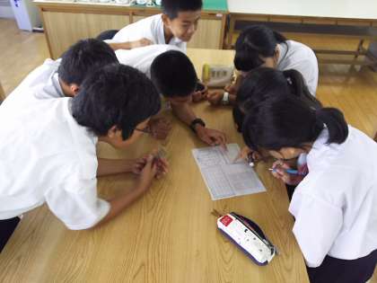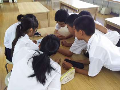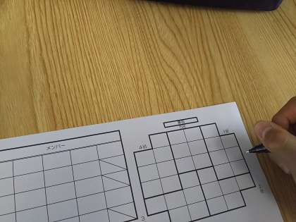 1年生は新班結成のための班長会議をしています。2組の様子です。