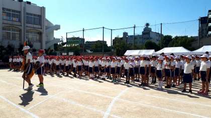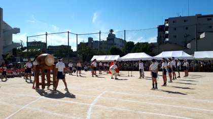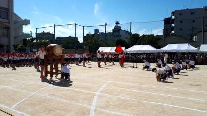 30日が台風で、延期となった玉造小学校の運動会が、本日秋晴れの下開催されました。