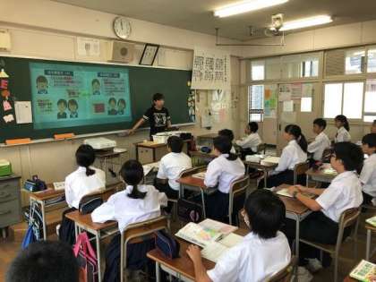 ICTの活用が充実しており、プロジェクターで映し出された様々なテーマについて、具体的事例あげながら一人ひとりが考え適切な対応方法を学習していました。