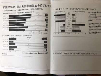 校長先生をはじめ数名の先生たちが授業見学を行う中で「男女共同参画社会」について学習をしました。