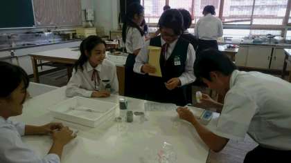冷却パックは混ぜた瞬間から冷たくなります。一番温度が下がった班はほぼ0度に。