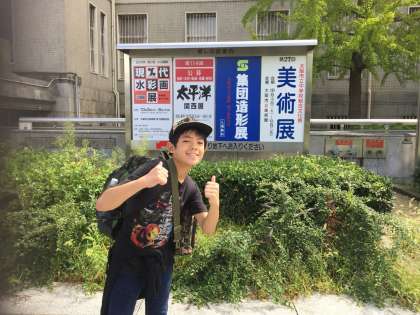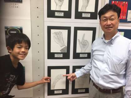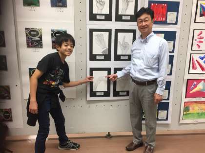 東中生と作品とともに記念に写真を撮らせていただきました!