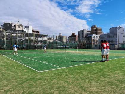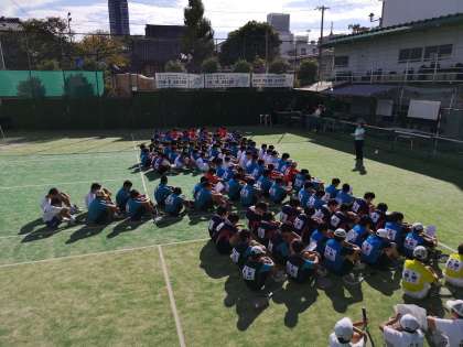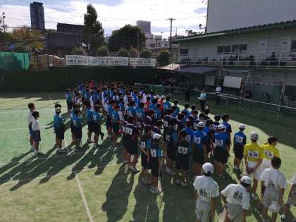 今日は、ソフトテニス大阪市新人大会の男子個人戦が明星中学校で行われています。