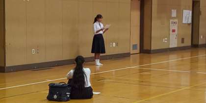 部活動集会リハーサル後、代表者による発表リハーサルを行っています。