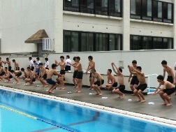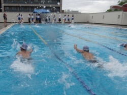 この日はあいにくの天気でしたが、生徒たちは元気いっぱい泳いでいました。