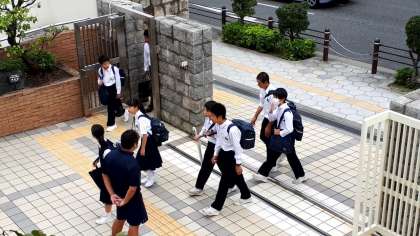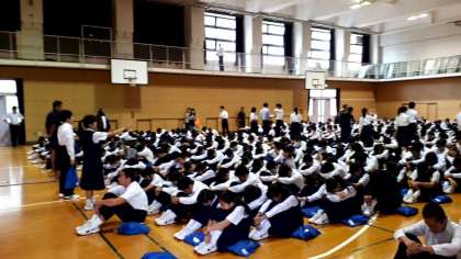 今朝は、少し肌寒い朝です。東中生が登校しています。この後、全校集会、生徒会役員、学級役員の認証式があります。