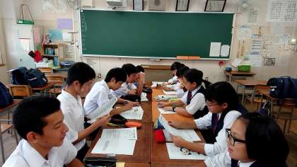 私語やチャイム着席が悪くなってきたなどの報告があり、学校の命である授業を真剣に受けようということからこの目標となりました。