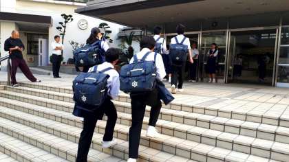 今日もさわやかな朝です。いよいよ秋本番!東中生が元気に登校してきました!