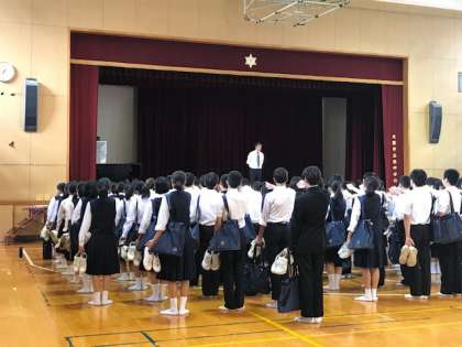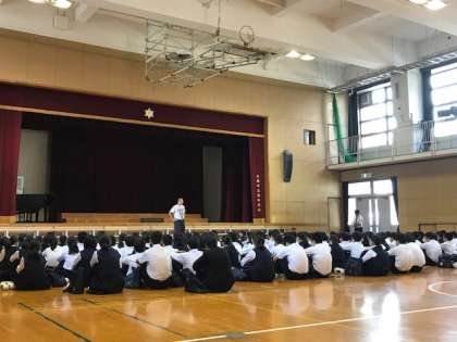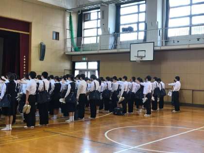 まずは、体育館で事業所挨拶にあたっての諸注意があります。