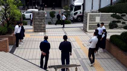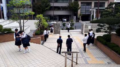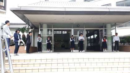 8時から生徒会の皆さんが「あいさつ運動」に取り組んでいますが、東中生はもうほとんど登校して、正門前は寂しいです。