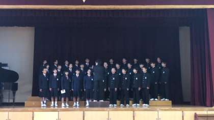 2年3組が体育館で合唱コンクールのリハーサルを行っています。