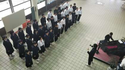 本日の2限目は、3年生が体育館や玄関ホール等を使っての最終調整です。