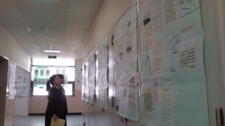 先輩の反戦へのメッセージを熱心に読む1年生。