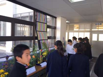 1年生、3階廊下見学の様子です。