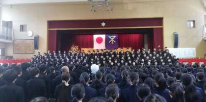 全学年での全体合唱「ふるさと」の様子です。