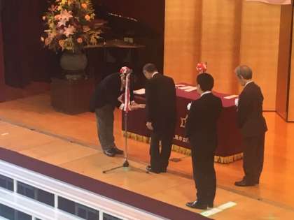 地域諸団体、東中学校同窓会、記念事業実行委員会より学校に記念品が贈られました。