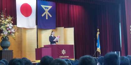 生徒代表として、前期の生徒会長が挨拶をしました。
